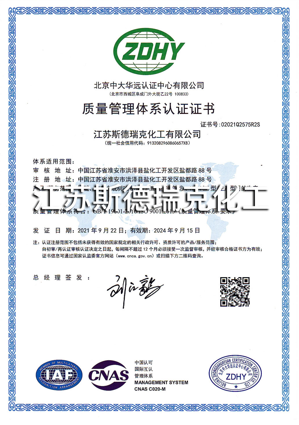 江蘇斯德瑞克化工有限公司成立于2002年,是一家集研發(fā)、生產(chǎn)和銷售一體化的“國家高新技術(shù)企業(yè)”。現(xiàn)有員工100多人,其中科技人員占20%以上;位于江蘇省淮安市鹽化工園,占地面積180畝,建筑面積達(dá)38000多平方米。